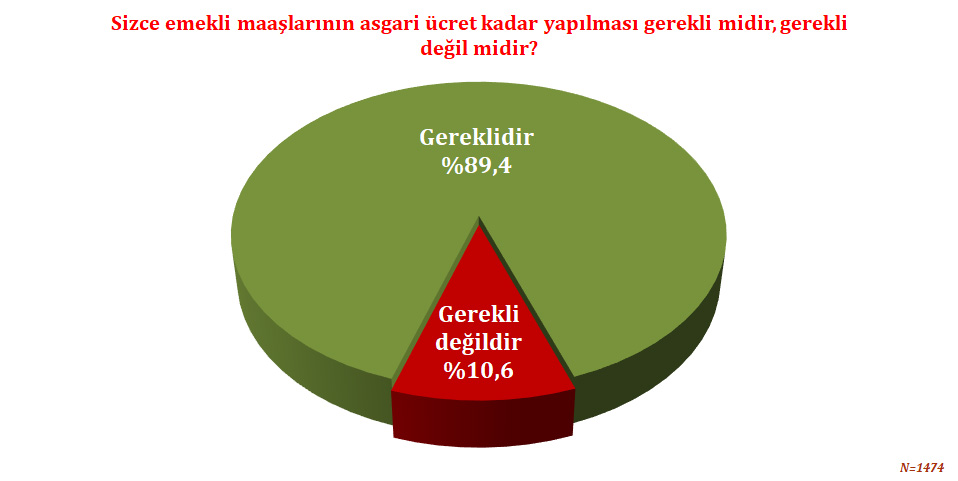 Gerekli olup olmadığını belirterek cevap verenlerin %10,6’sı emekli maaşlarının asgari ücret kadar yapılmasının «gerekli olmadığını», %89,4’ü «gerekli olduğunu» belirtmiştir.